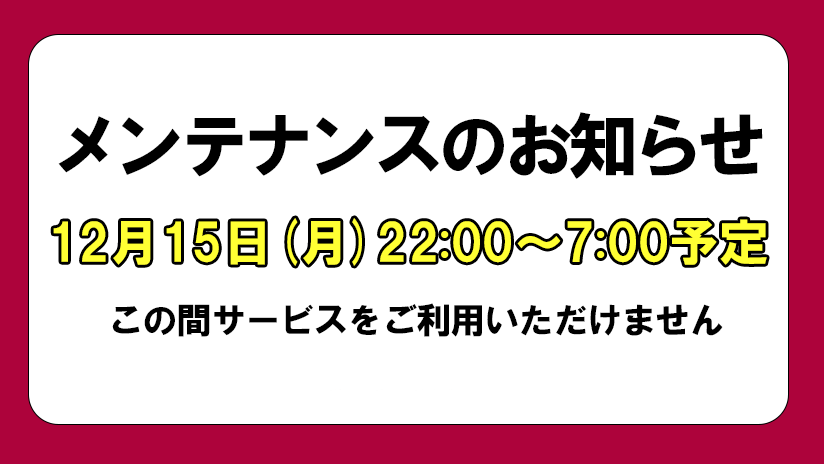 2025年12月12日メンテナンスシステムメンテナンスのお知らせ